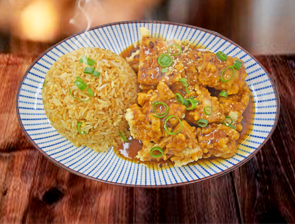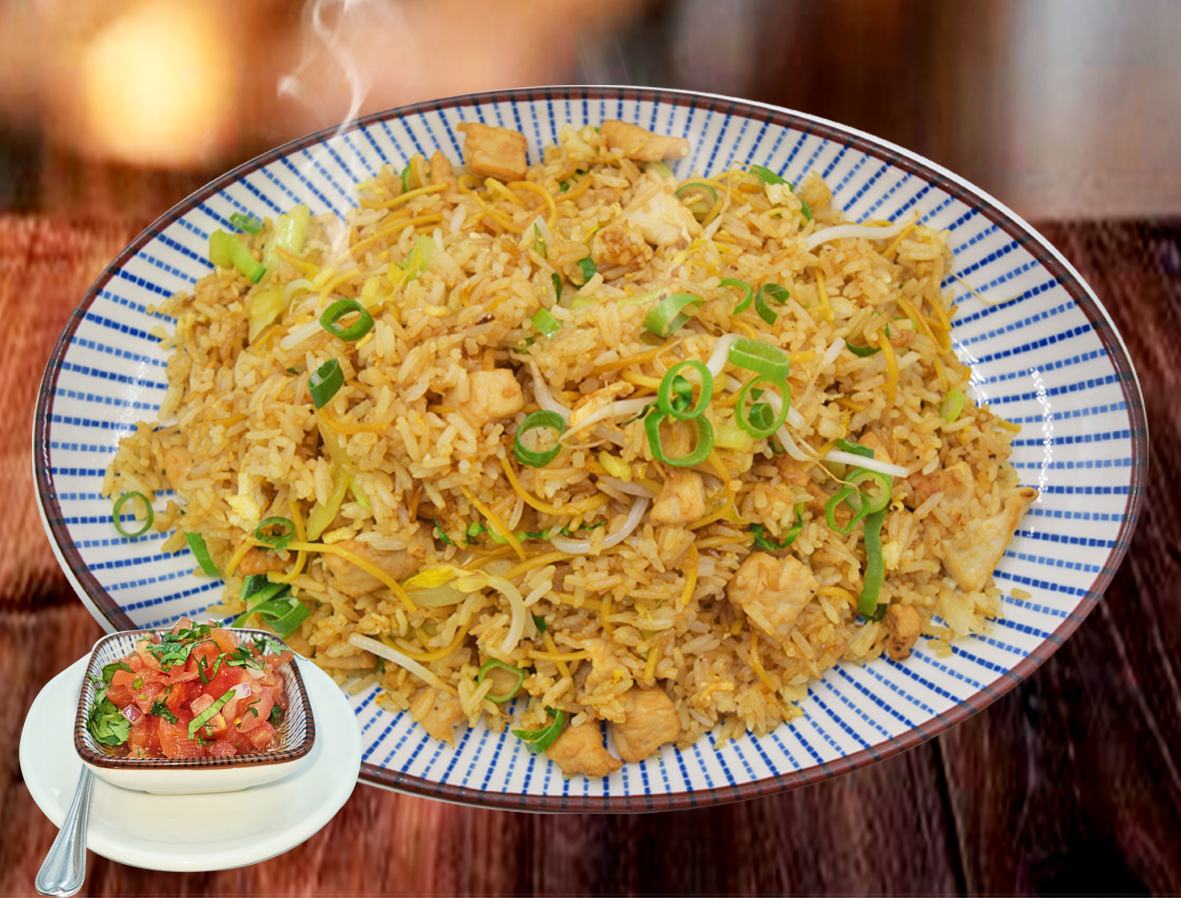 1. Nuestro engreído siempre, un plato de arroz combinado con huevo, pollo, soja y wantán frito, más conocido como ARROZ CHAUFA DE POLLO