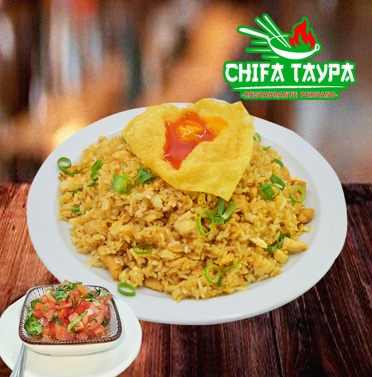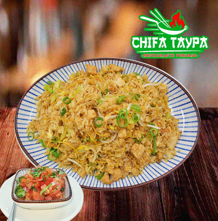 1. Nuestro engreído siempre, un plato de arroz combinado con huevo, pollo, soja y wantán frito, más conocido como ARROZ CHAUFA.