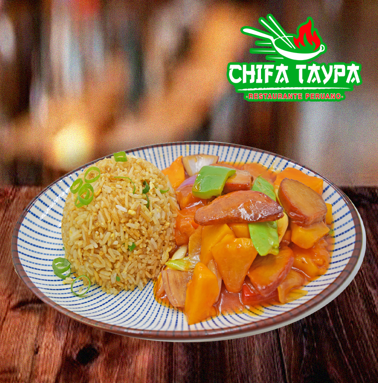 9. Otro pedidito en Chifa Taypa CERDO CON TAMARINDO, arrebozado con verduras y salsa de tamarindo.